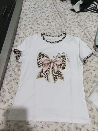 3 reviews for Franclia Women’s Leopard Print Bow Decor Round Neck T-Shirt