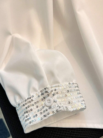 GlowEve Women’s Sequin Solid Color Blouse, Standard Size, Suitable For Spring, Autumn And Winter