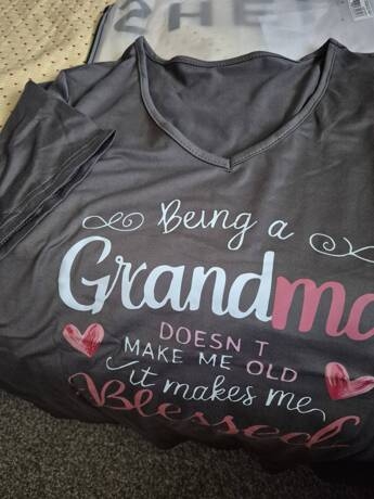 3 reviews for GRANDMA Slogan Text Graphic V-Neck Short Sleeve Casual T-Shirt, Gift For Grandmothers, Christmas
