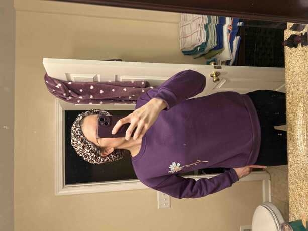 So comfy! In 40° weather and it was very warm, very soft material and the decal sunflower is sturdy! I washed it 5 times so far and not a single fade!