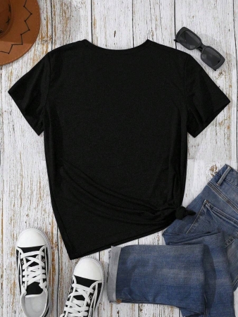 INAWLY Plus Size Simple Printed Round Neck Short Sleeve T-Shirt This Mama Prays Graphic Tees Women Tops