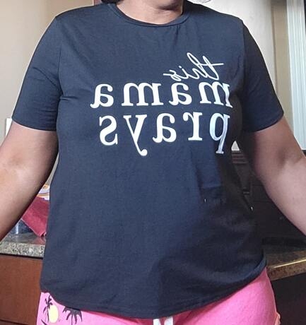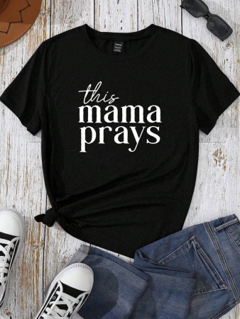 3 reviews for INAWLY Plus Size Simple Printed Round Neck Short Sleeve T-Shirt This Mama Prays Graphic Tees Women Tops