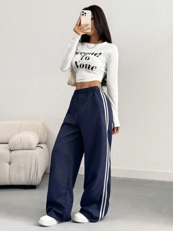 INAWLY Women Plus Size Casual Pants With Contrast Color Side Stripes Fall Cloth For Women