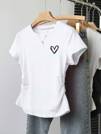 INAWLY Women’s Butterfly & Heart Print Graphic Tee With Cinched Waist, Summer New Arrival