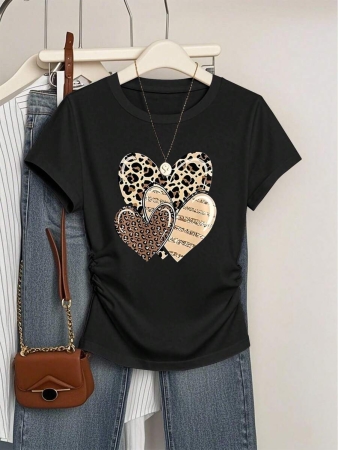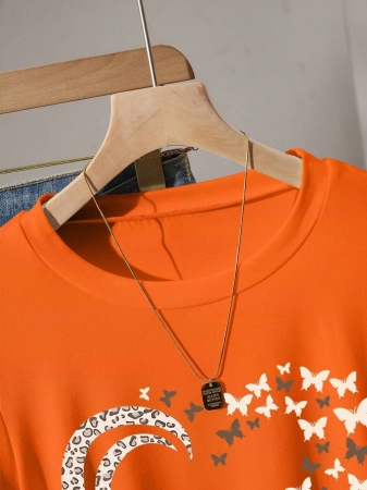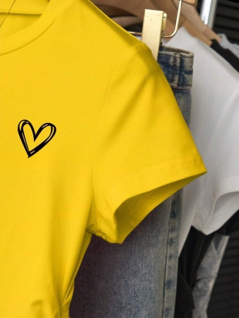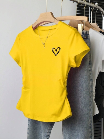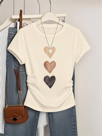 3 reviews for INAWLY Women’s Butterfly & Heart Print Graphic Tee With Cinched Waist, Summer New Arrival
