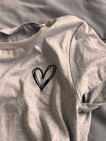 Wow! Super SOFT and comfy tee! Love the fit, love the elastic cinch on the side, and the little heart adds the right touch! Definitely recommend- so soft!