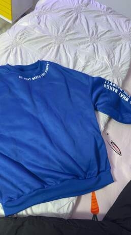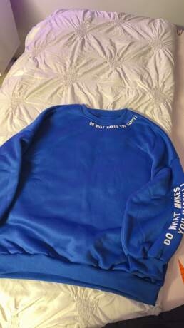 Product Quality: amazing and truly the best 👌 I have recieved from any company yetTrue to Product Images: color quality and phrases shown are all true to what is shown I love love love itSmell Description: perfectly clean and clear of any mistakes or damageFabric Material: felt amazing and love the fleece insideFit: couldn’t be happier I live my sweater loose so I chose a size up and it’s perfect