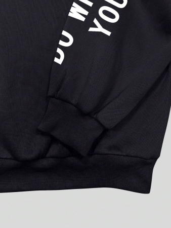 INAWLY Women’s Drop Shoulder Fleece Sweatshirt With Slogan Print,Three Quarter Sleeve Tops Graduation,Back To School Outfits,Graduation,Teacher Outfits For Women,Back To School Pullover Fall Outfit