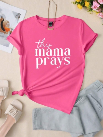 INAWLY Women’s Slogan Printed Short Sleeve T-Shirt This Mama Prays Graphic Tees Women Tops