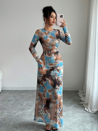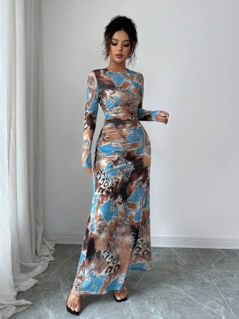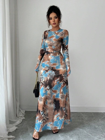 Ladies’ All-Over Printed Bohemian-Style Elegant And Versatile Dress, Exuding Charm, Suitable For Beach, Travel, And Parties