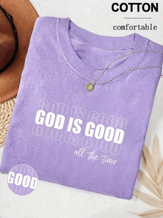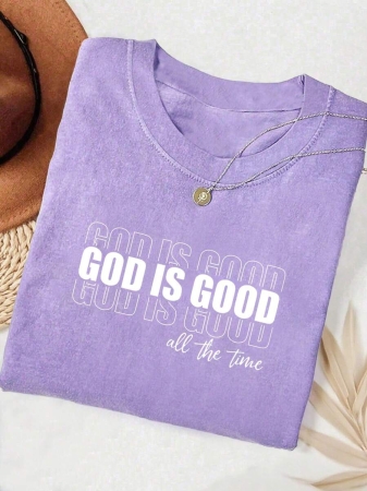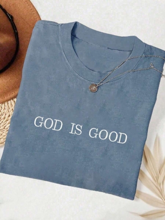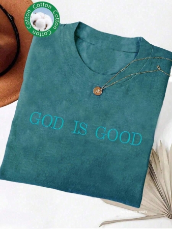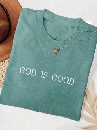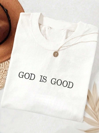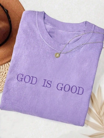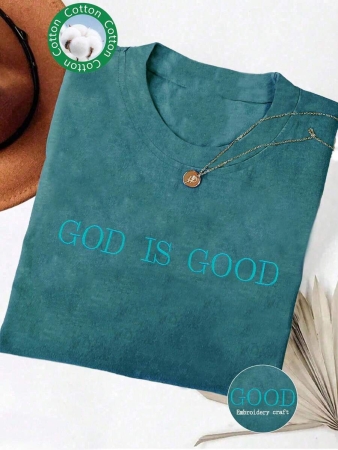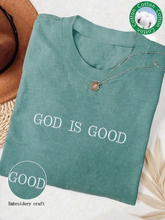 Lalippa Embroidered Minimalist Shirt “God Is Good” Christian Faith Comfortable Color Shirt Gift, Faith Shirt, Faith T-Shirt, Church Group Shirt, Women Round Neck Embroidered T-Shirt