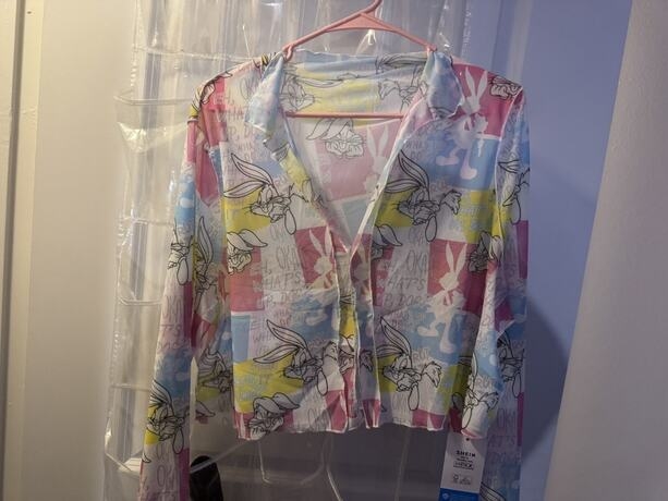 3 reviews for LOONEY TUNES X SHEIN Plus Size Women Casual Y2K Cute Cartoon Plaid Graphic Print Mesh Long Sleeve Fitted Crop Top , Spring And Summer