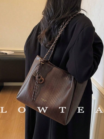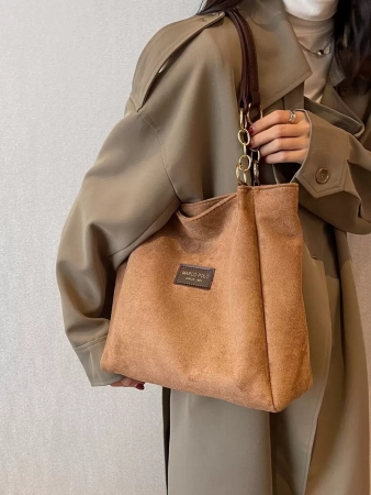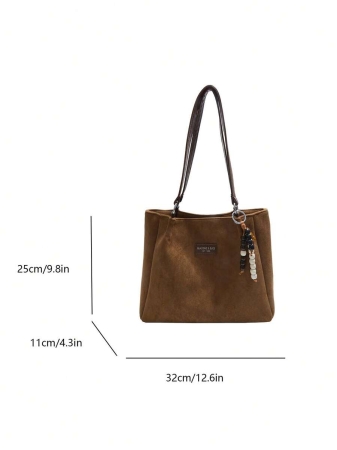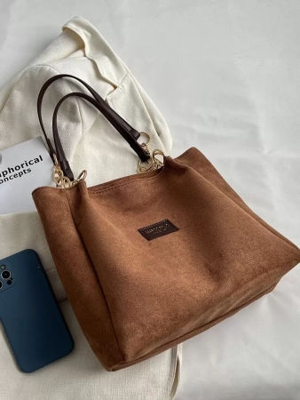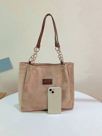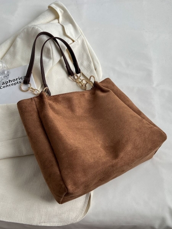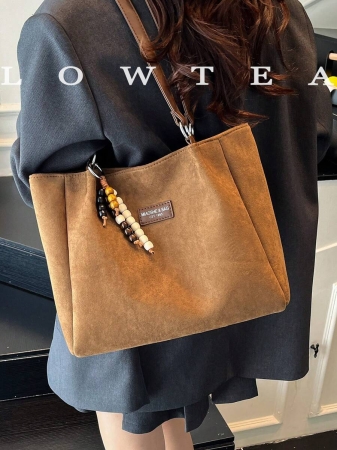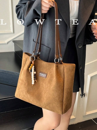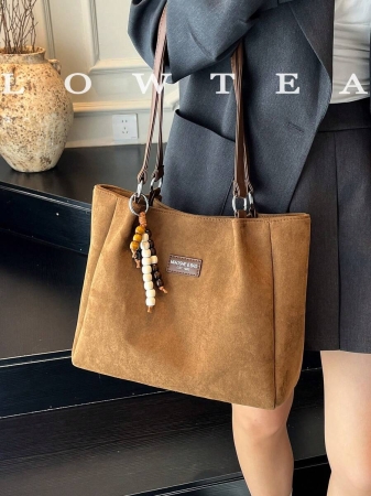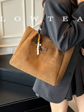 low tea 1pc Solid Color Faux Suede Tote Bag,Large Capacity Shoulder Handbag With Zipper, Fashionable For Commuting, Travel, Shopping, Dating, Gift For Women, Suitable For Teens, College Students, Beginners And Office Ladies,Applicable For Office, School, Work, Business, Commuting, Outdoor, Travel, Picnic, New Autumn And Winter Women Bag, Best Fall Purse, Newest Fashionable Suede Bag For Women, Perfectly Matching With Fall Outfits Women Fall Clothes For Women, New Fall Fashion 2025 For Women