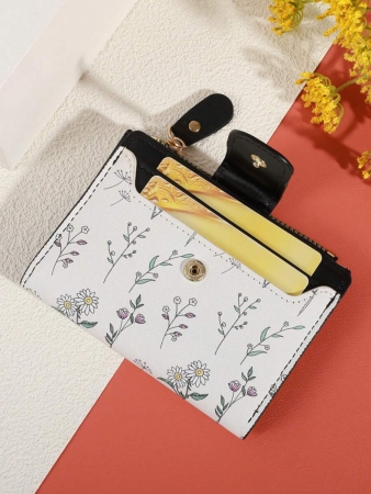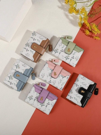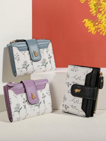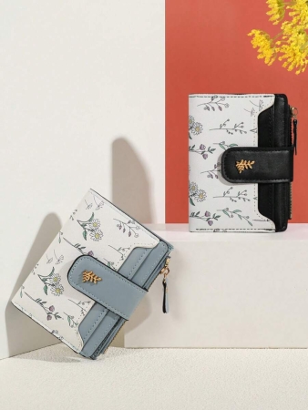 3 reviews for MADLEY Elegant Floral Print Metal Button Compact Wallet For Women Money Wallet Mini Wallet Purse Wallet Fall Small Wallet Cute Wallet
