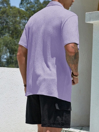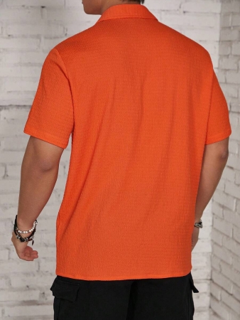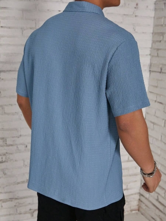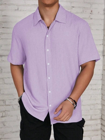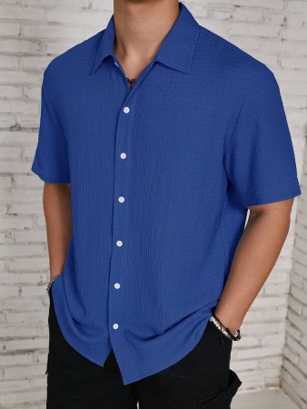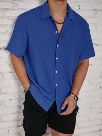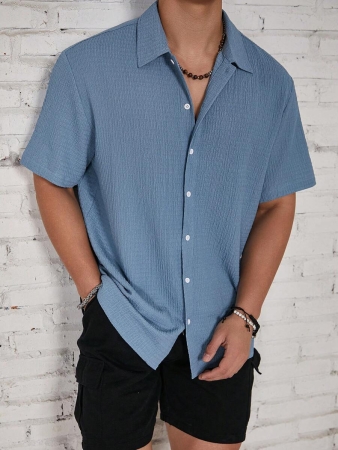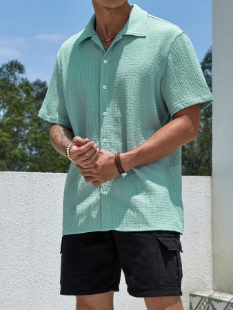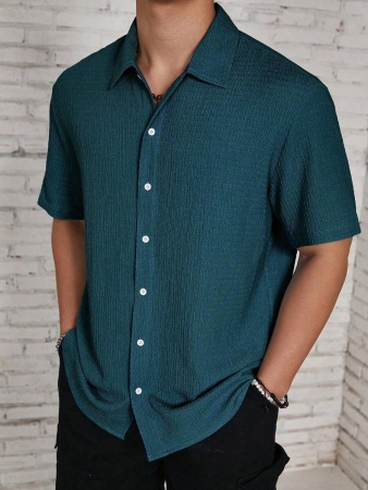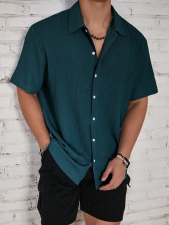 Manfinity Homme Loose Fit Men’s Solid Color Button-Up Short Sleeve Casual Shirt