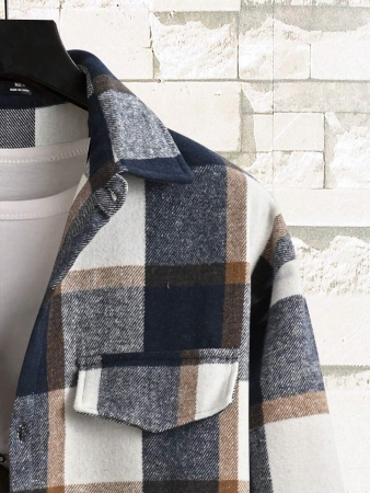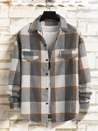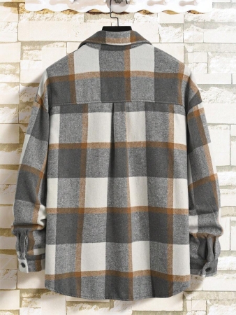 3 reviews for Manfinity Homme Loose Fit Plaid Print Drop Shoulder Overcoat For Men (No T-Shirt Included)