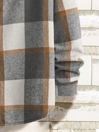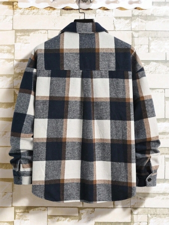 Manfinity Homme Loose Fit Plaid Print Drop Shoulder Overcoat For Men (No T-Shirt Included)