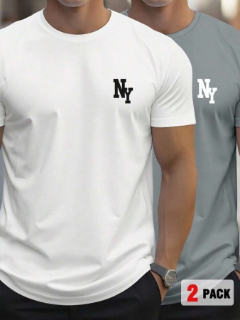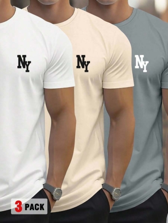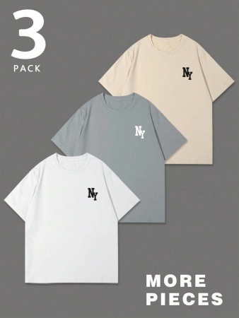 3 reviews for Manfinity Homme Men’s Casual Letter Print Round Neck Short Sleeve T-Shirt, Summer