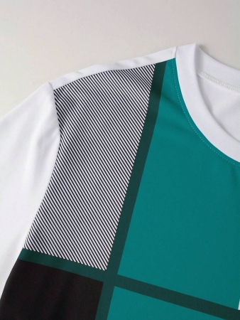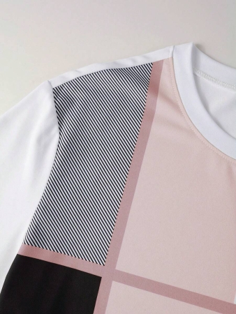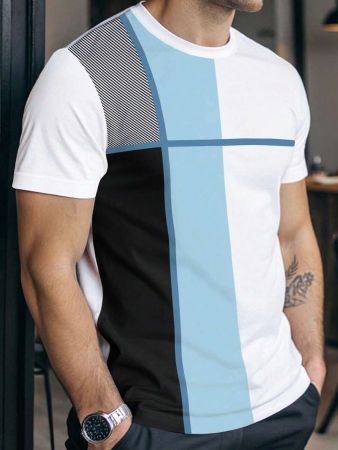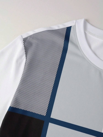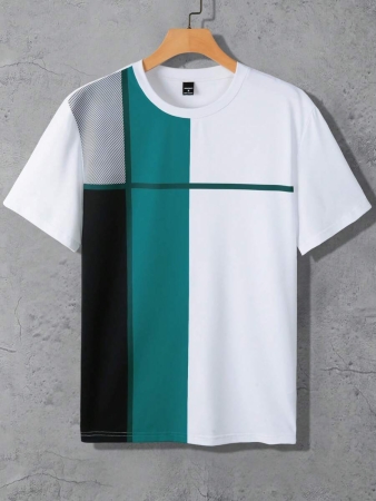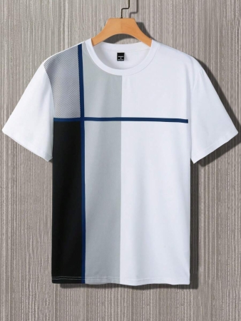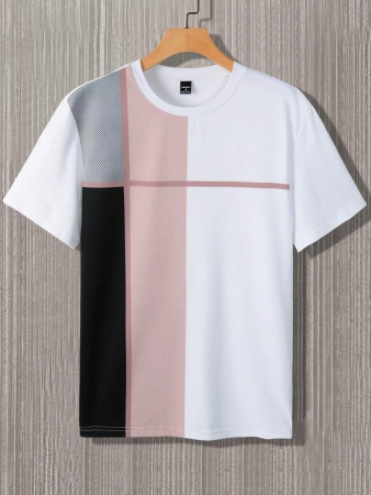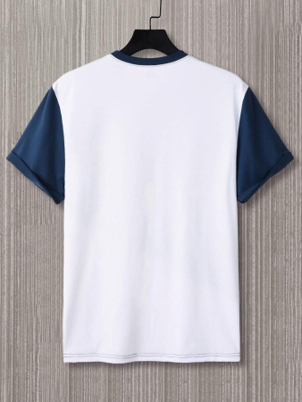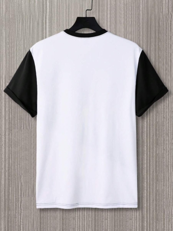 Manfinity Homme Men’s Colorblock Round Neck Short Sleeve Casual T-Shirt White