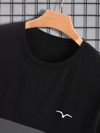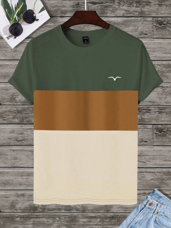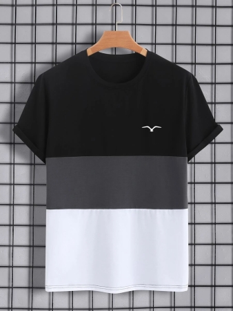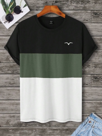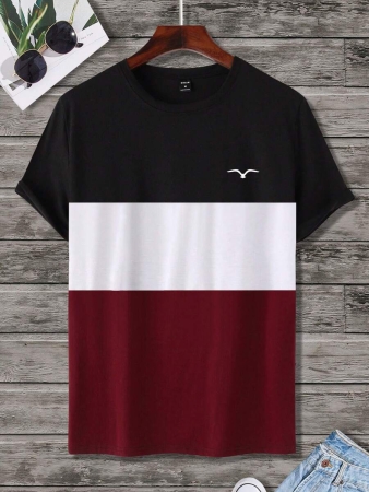 Manfinity Homme Men’s Seagull Pattern Contrast Color Short Sleeve T-Shirt, Men Tees, Color Block T Shirt Men