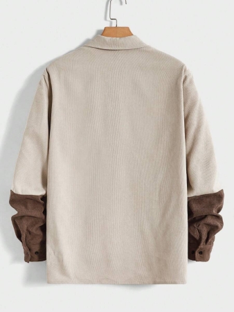 Manfinity VCAY Men Two Tone Letter Patched Detail Corduroy Shirt Without Tee, For Fall