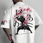 3 reviews for Men’s Casual Japanese Sakura Samurai Design Graphic Print White Short Sleeve Crew Neck T-Shirt