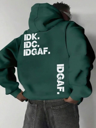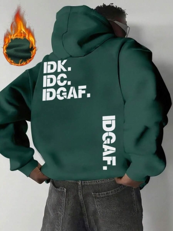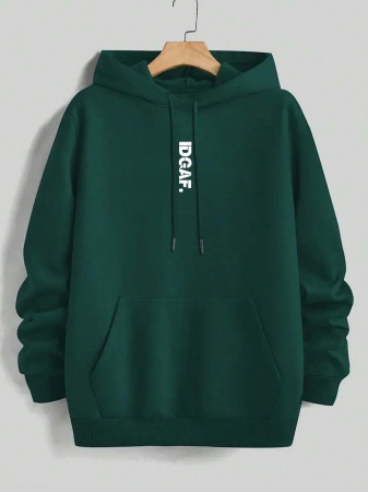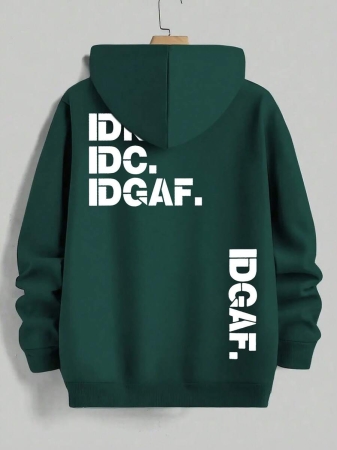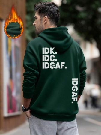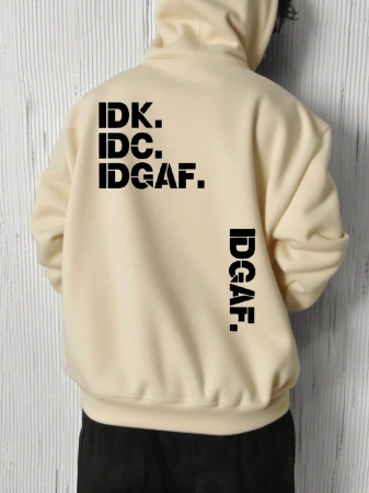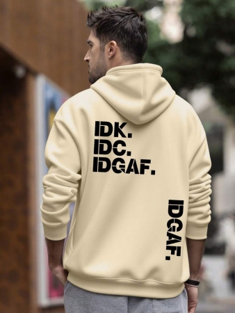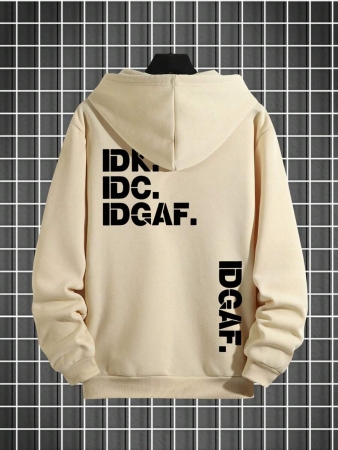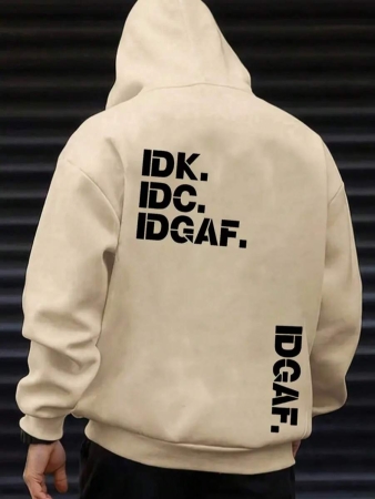 Men’s Casual Street Style Hoodie, Apricot Color With Slogan Design, Autumn/Winter