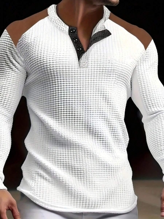 3 reviews for Men’s Front Button Waffle Knit Patchwork Contrast Color Henley T-Shirt, Casual Outdoor, Fall