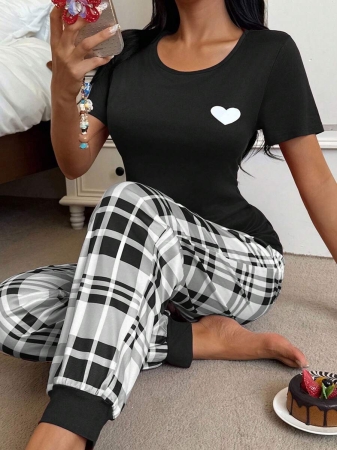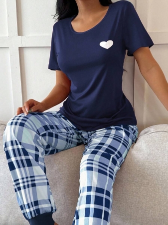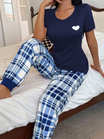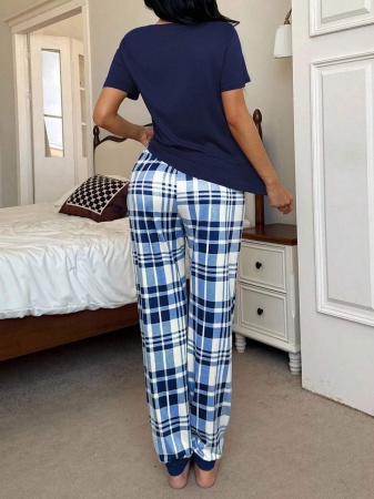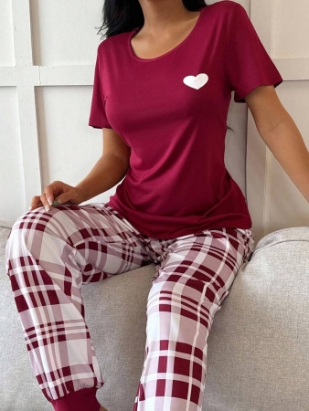 3 reviews for Miss Vinta Red And Plaid Long Pant Pajama Set With Round Neck And Casual Style Burgundy Plaid Pajama Set, Fall Winter Clothes