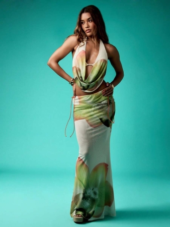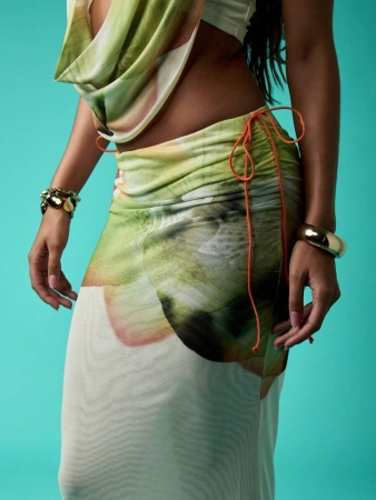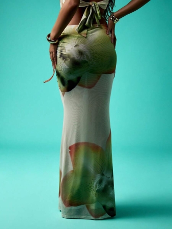 MISSGUIDED Beach Maxi Skirt Cover Up Tropical Paradise Resort Wear Side Tie Flowy Long Summer Vacation Pool Sarong