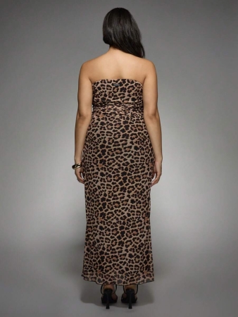 MISSGUIDED MISSGUIDED PLUS Luxury Plus Size Leopard Print Strapless Bandeau Maxi Dress Evening Cocktail Party Wedding Guest Formal Special Occasion Long Ruched Dress