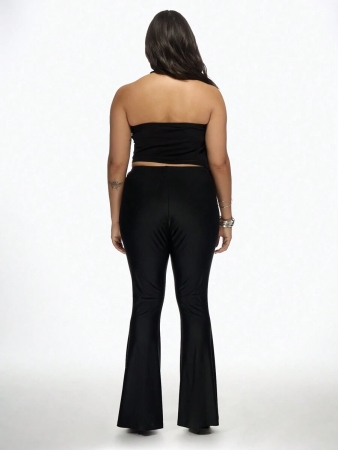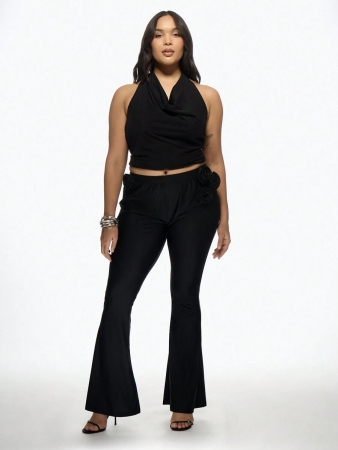 MISSGUIDED MISSGUIDED PLUS Plus Size Flared Pants With Rosette Detail Elastic Waist Career Office Wear Work Trousers Dancing Party Evening Formal Bottoms