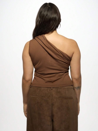 MISSGUIDED MISSGUIDED PLUS Plus Size One Shoulder Crop Top Asymmetrical Ruched Design Sleeveless Party Club Night Out Fitted Elegant Modern Fall Winter Fashion