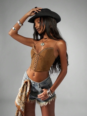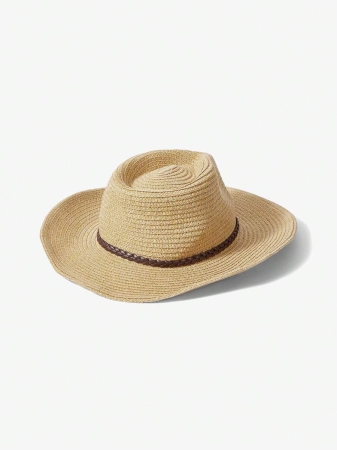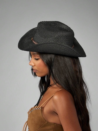 MISSGUIDED Western Straw Cowboy Hat Braided Band Summer Festival Beach Sun Protection Wide Brim Rodeo Ranch Outdoor Adventure Casual Headwear