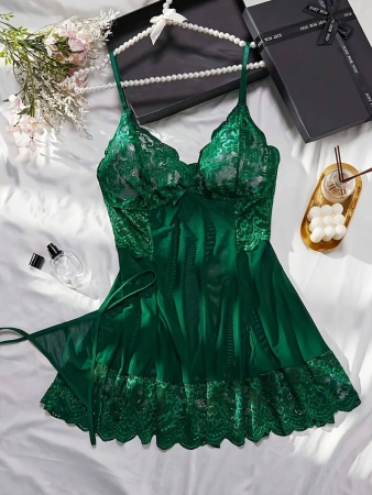 3 reviews for Ning xue yan ying 2-Piece Set Of Women’s Blackish Green Sexy Spaghetti Strap Bow Decoration Suspender Dress Tempting Lace Mesh Sleeping Dress Spaghetti Strap Sexy Underwear Dress Sleepwear Home Suit Set, Bridal Lingerie For Rave For Going Out