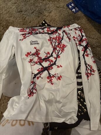 Love this shirt sm! It’s so pretty! It’s pretty tight tho so size up if you want it baggy. It also sits off your shoulders.