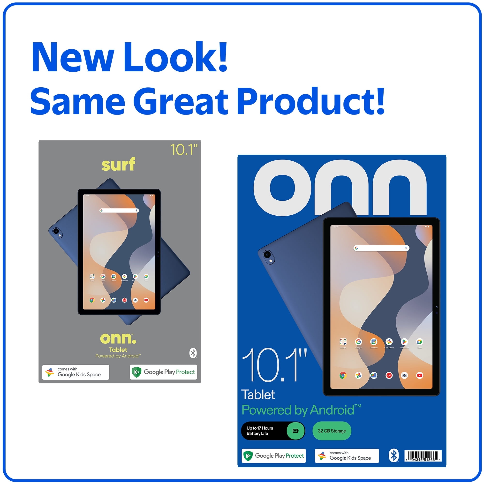 Take it with you — mobile computing has never been easier than with our onn. 10.1″ Tablet. Great for everyday use, we’ve given it a crystal-clear display plus 17 hours of battery life, so you’ll run out of juice before it does! Surf, work, socialize, play games or even stream content from the web. Running the Android 14 operating system, this tablet has a familiar smartphone-like feel, but with added kick for all of your surfing needs. Surf onn.
