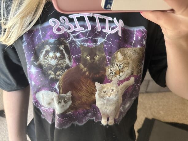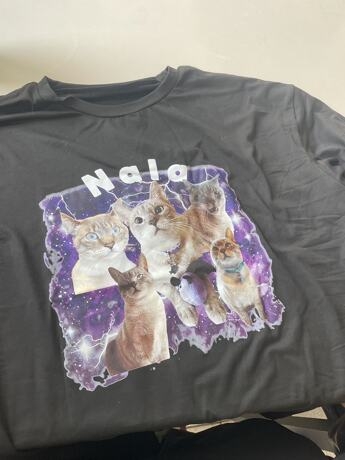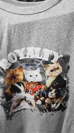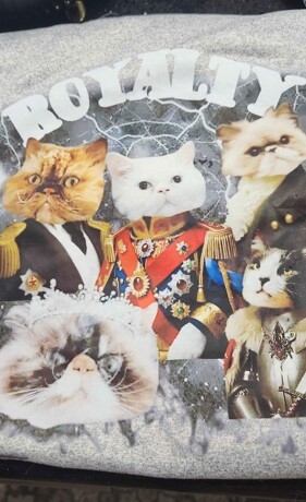 I was so excited for this shirt and it didn’t disappoint. made of a lightweight sweatshirt type material with a vivid graphic. I put pictures of my cats on it Renaissance attire, ‘ROYALTY; The princess and her men’! It’s so cute!!
