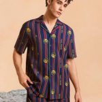 Paul Frank X SHEIN Men’s Color Block Striped & Cartoon Pattern Button Front Short Sleeve Top And Shorts Loungewear Set