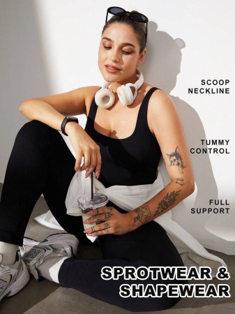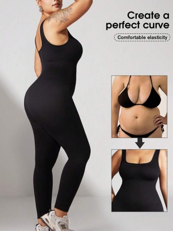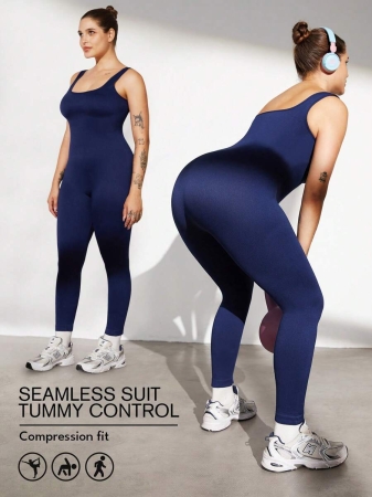 Plus Size Curve Woman Activewear Yoga Clothes Seamless Gym Sports High Support Moisture Wicking Workouts Breathable Outdoor Plus Size Curve Tummy Control High Elasticity Straps Gym Women Outfit Women’s Seamless Yoga Bodysuit