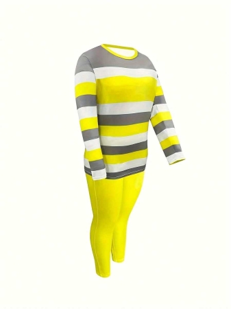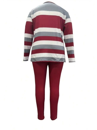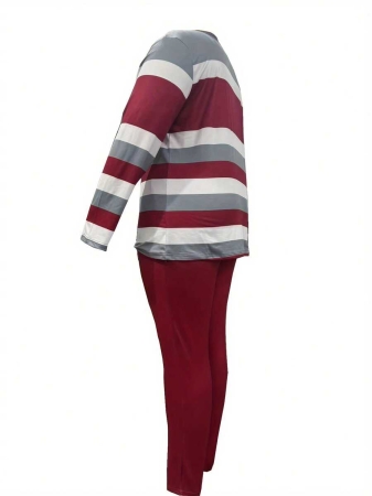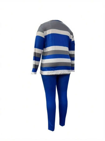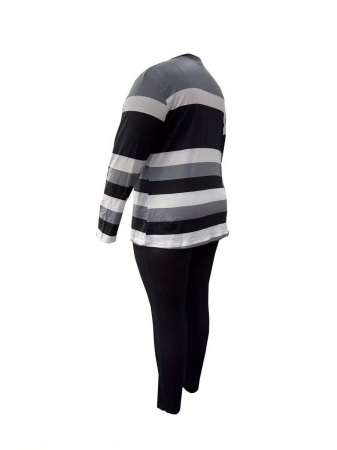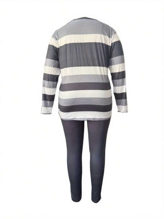 3 reviews for Plus Size Striped Long Sleeve Top And Solid Color Pants Set – Casual Polyester Blend With Pocket Detail, Medium Stretch Fabric, Round Neck Women’S Plus Size Outfit