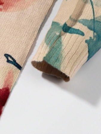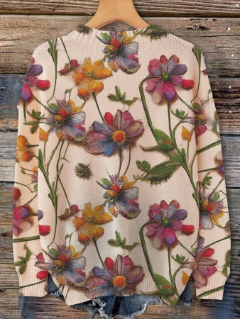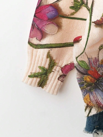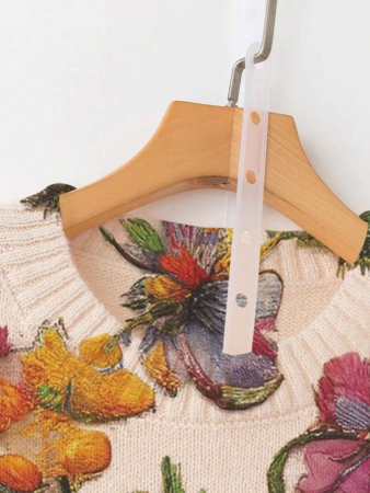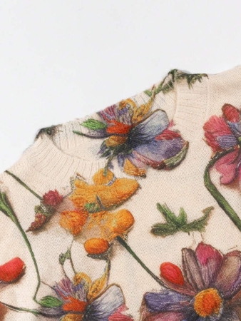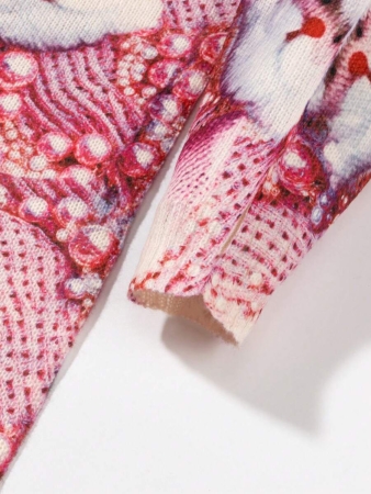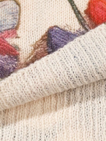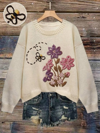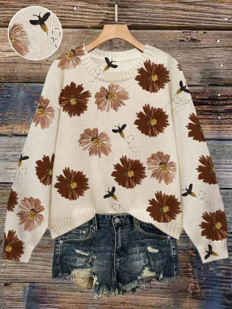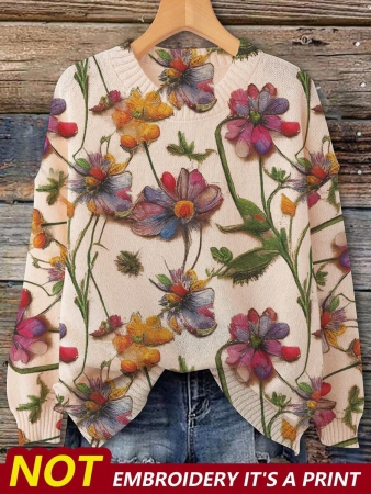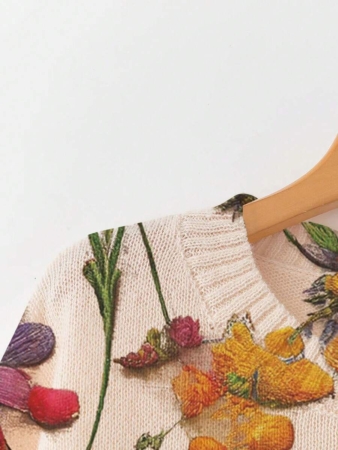 Plus Size Women’s Floral Printed Crew Neck Loose Fit Thin Knit Sweater, Autumn Winter