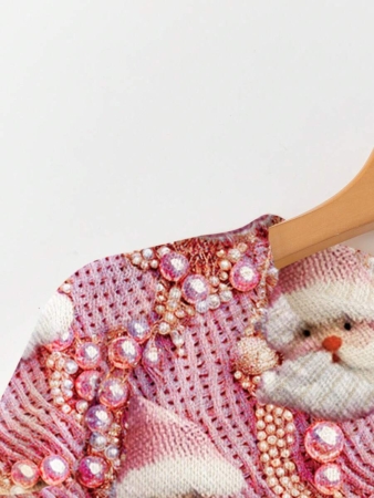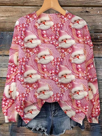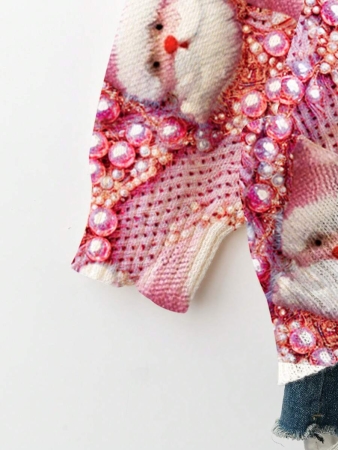 Christmas Coconut Tree Print Casual Crew Neck Long Sleeve T-Shirt, Women Holiday Clothes For Fall And Winter