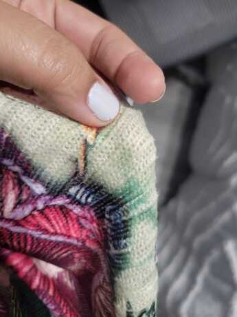 Product Quality: Excellent quality – it is not plastick-y at all. Wool-like feeling. Floweres are not embroidered, they are painted on but still very vibrant and beautifulFit: True to sizeTrue to Product Images: Image depicts flowers that could be embroidered but these are painted on. Still beautiful.