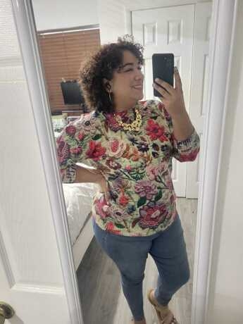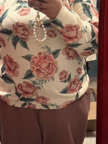 3 reviews for Plus Size Women’s Floral Printed Crew Neck Loose Fit Thin Knit Sweater, Autumn Winter