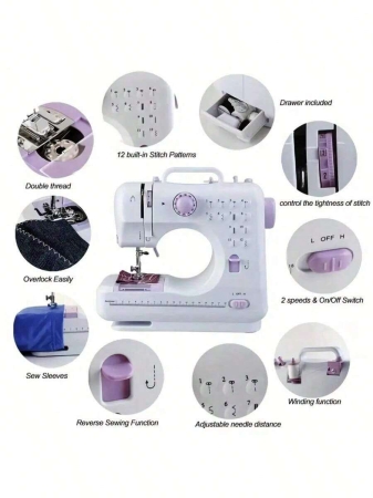 Portable Electric Sewing Machine Professional Version, With 12 Thread Patterns, Adjustable Speed, Overlock, Suitable For Novice Sewing Enthusiasts, Lightweight, Easy To Use, Very Suitable For Repair DIY, Handmade