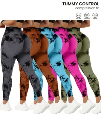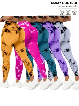 QGU QGU 5-Pack High Waist Tummy Control Yoga Pants For Women, Summer Tie.Dye Fitness Leggings, Stretchy Running Peach Lift Workout Tights,Assorted Colors