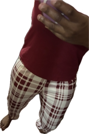 3 reviews for Red And Plaid Long Pant Pajama Set With Round Neck And Casual Style Burgundy Pajama Set Plaid Pajama Set, Fall Clothes