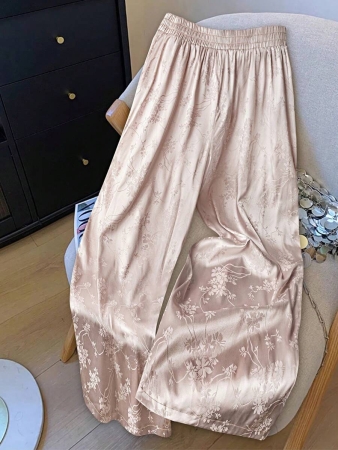 Regalyn Plus Size Women Elegant Satin Jacquard Pressed Pleated Straight Leg Trousers Fall Cloth For Women