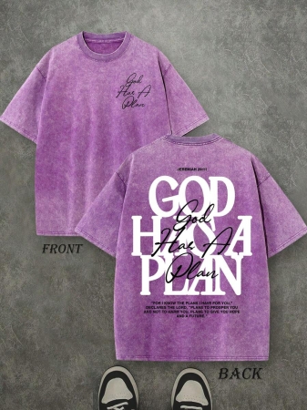 3 reviews for Retro Washed T-Shirt Double Sided Printed (230 Pure Cotton T-Shirt) ‘GOD HAS A PLAN’ Letter Print, Men’s T-Shirt, Men’s Casual, Comfortable, Fashionable T-Shirt, Street Style Cotton